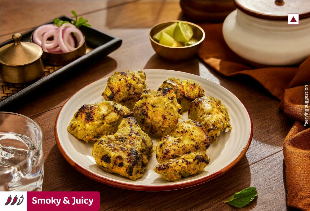 When you bite into it you’re met with a juicy, spicy, smoky and slightly minty flavour. Boneless pieces of chicken are marinated in a fresh green herb and spice base that consists of mint, coriander leaves, curd, aromatic spices and green chilli.