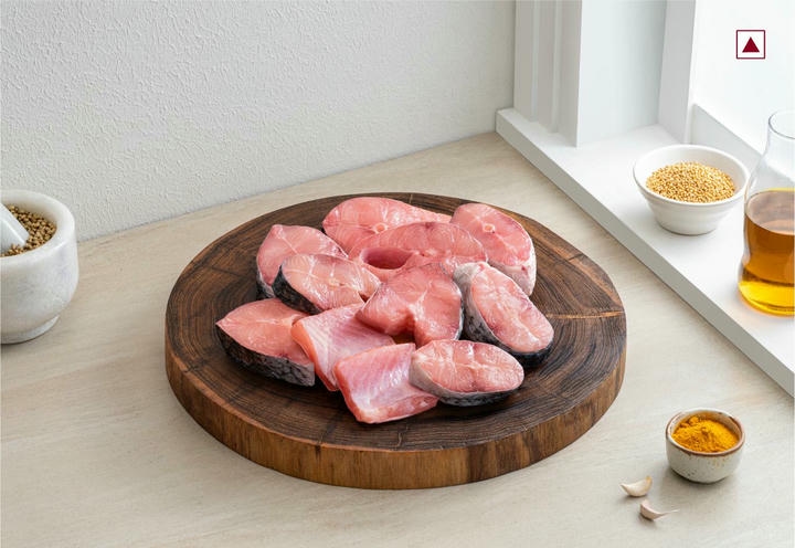 Medium-sized cuts of Freshwater Rohu, with the flavourful head.